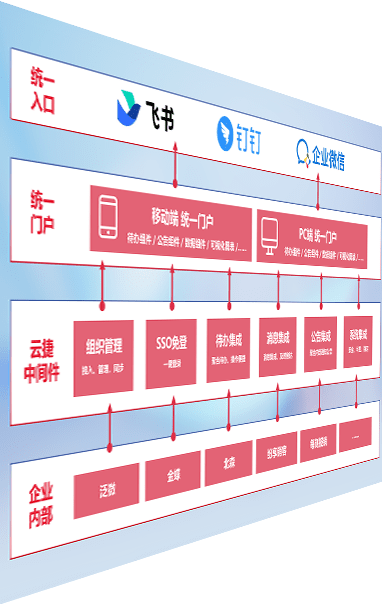 对协作平台提供支持服务,,支持企业应用与协作平台对接,,,包含组织同步、、、、消息集成、、待办集成等。。。支持目前主流的协作平台:钉钉、、、企微和飞书。。